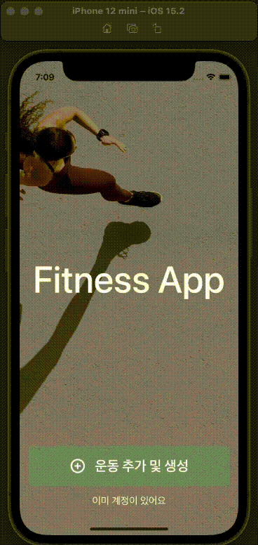 개인 운동 목표와 진행 상황을 기록할 수 있는 애플리케이션으로 SwiftUI 학습을 위해 개발하였습니다.