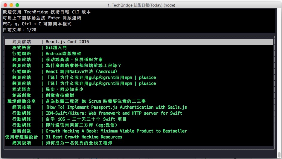 用 CLI 瀏覽 TechBridge 文章(受到 hn-cli 啟發)